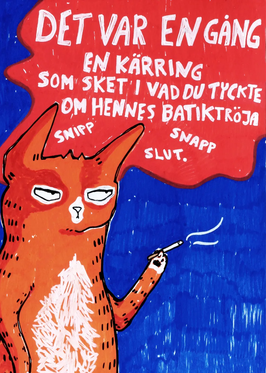 Illustrationen är skapad med akryl, tusch och bläck på papper av arkivkvalitet.