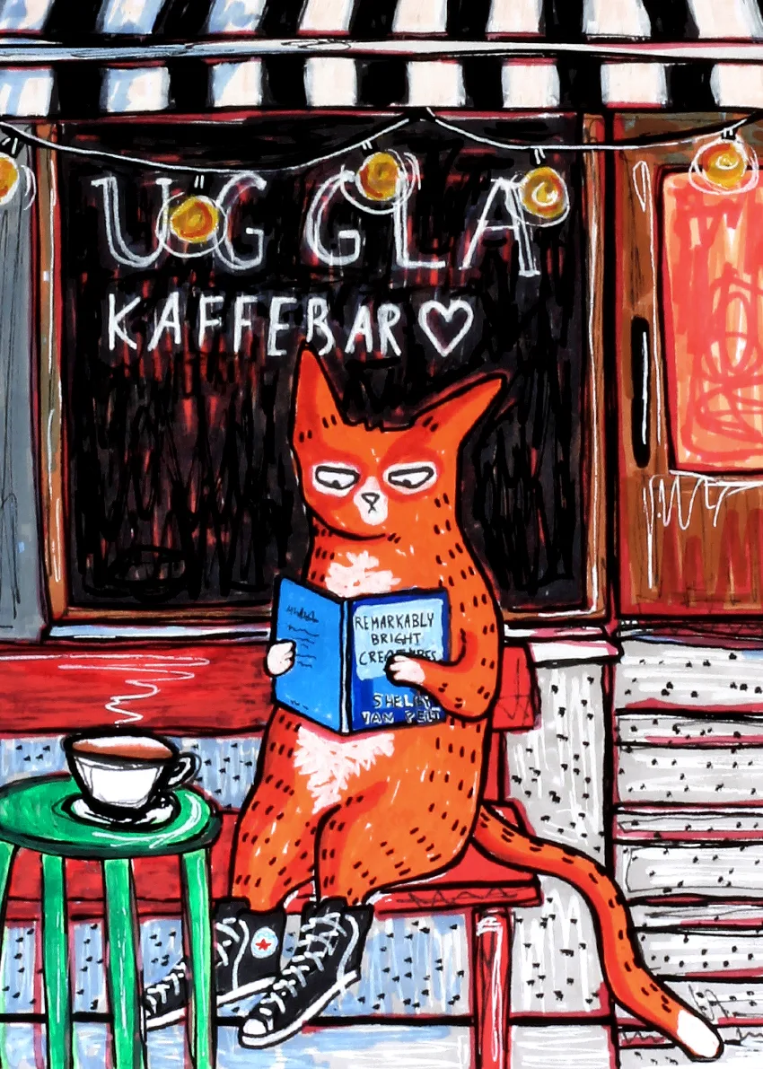 Originalillustration – Cafékultur, Uggla Kaffebar, Malmö