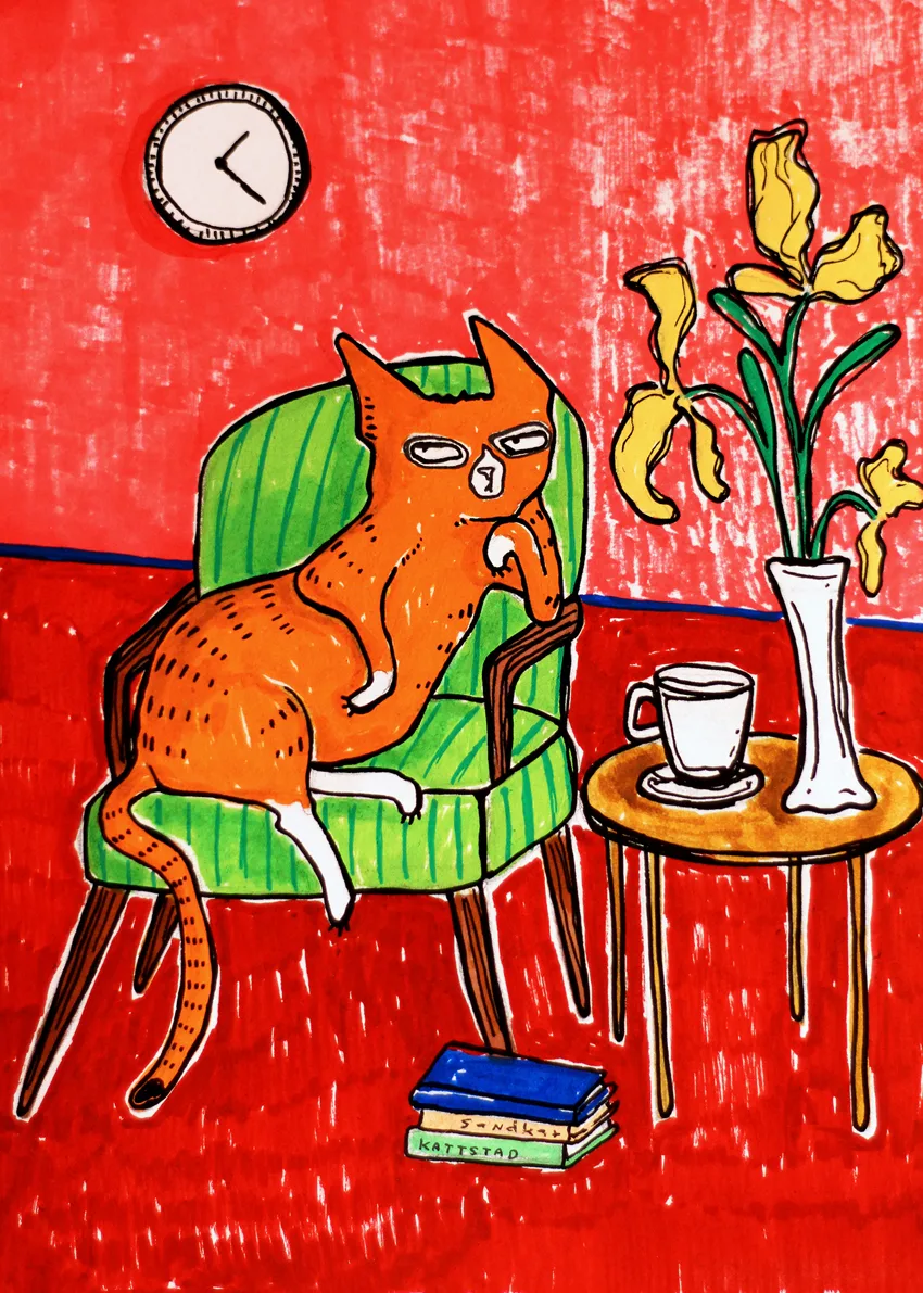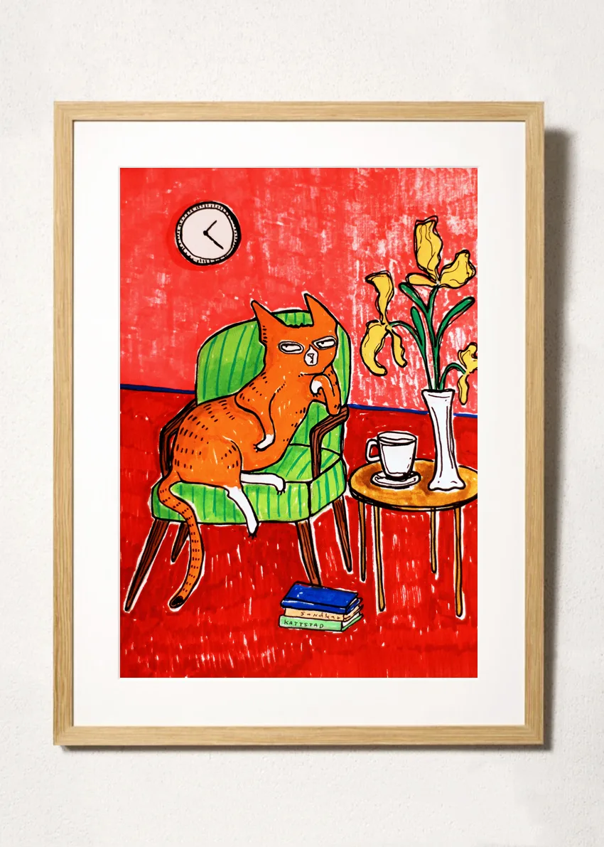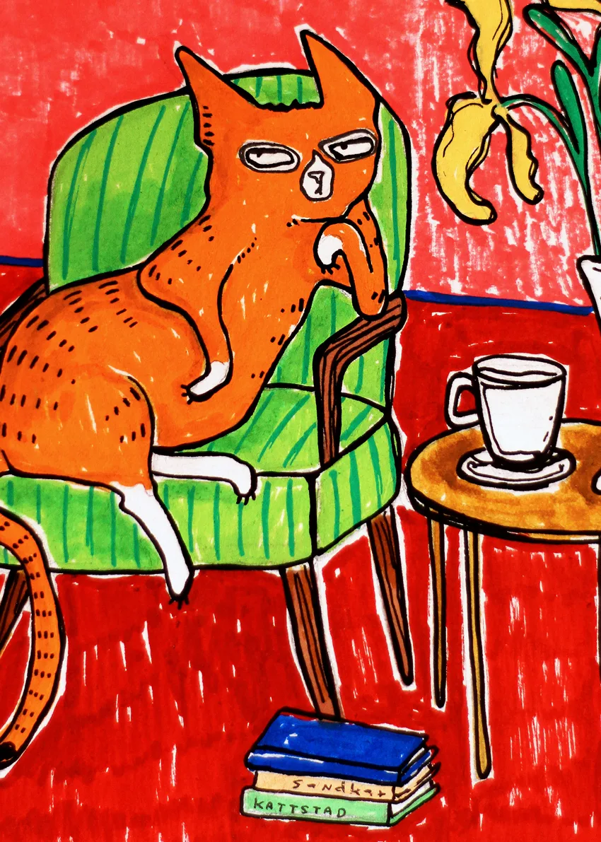 Illustrationen är skapad med akryl, tusch och bläck på ett tunnare konstpapper. – Storlek 15×21 cm (A5) – Signerad på fram- och baksida – Säljs utan ram