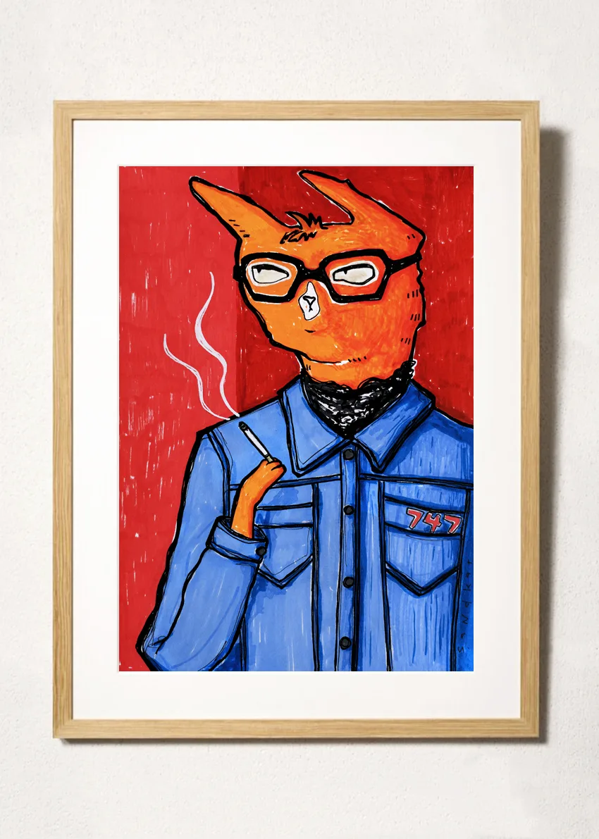 Illustrationen är skapad med akryl, tusch och bläck på papper av arkivkvalitet.