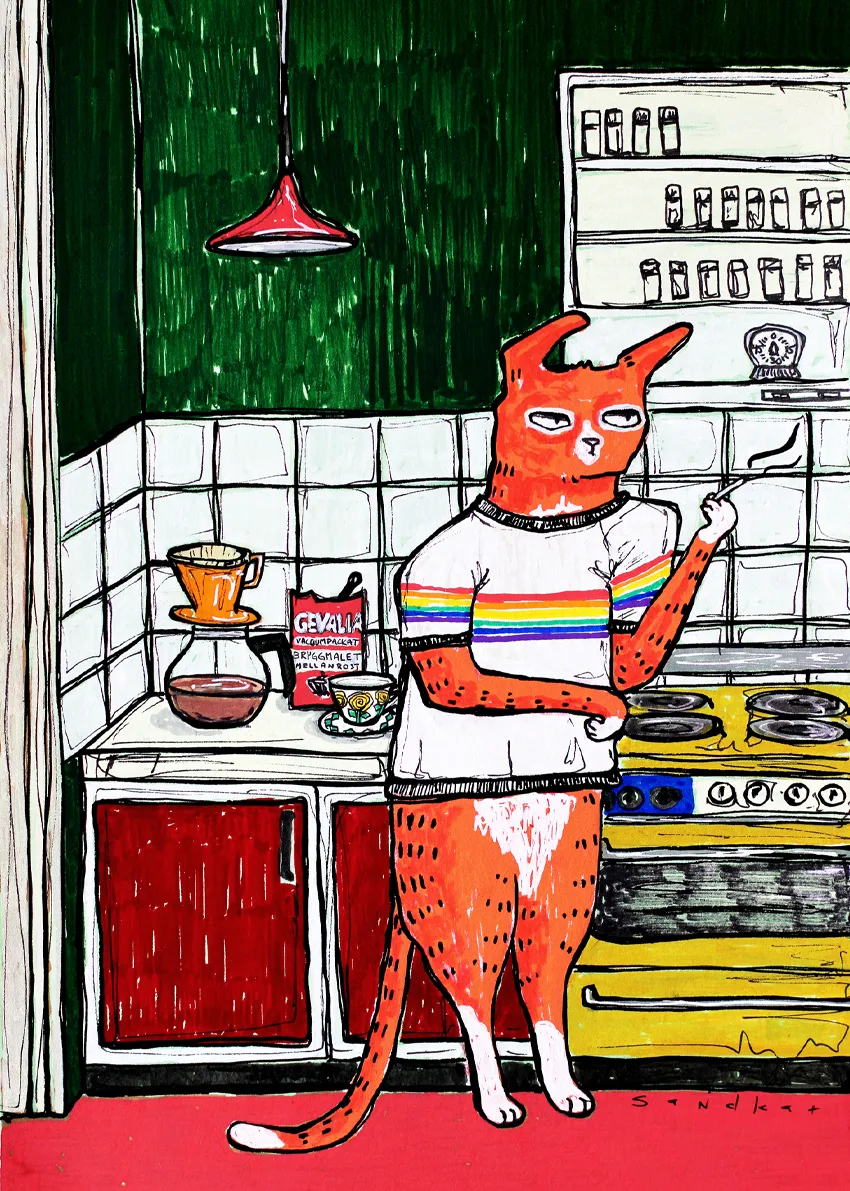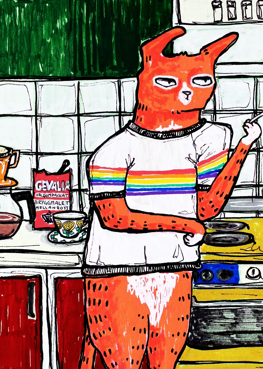 Illustrationen är skapad med akryl, tusch och bläck på papper av arkivkvalitet.